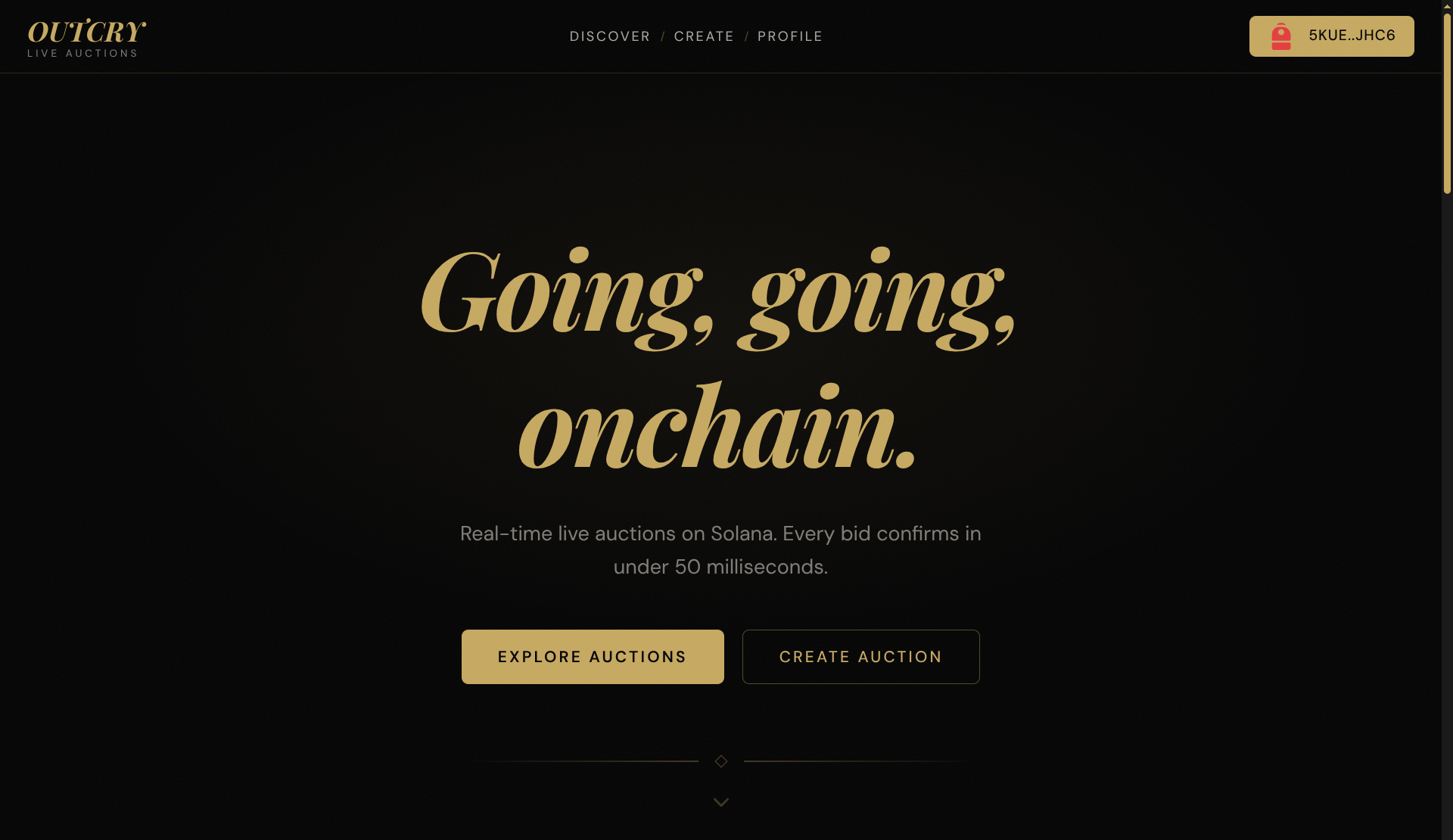 Real-time live auctions where every bid settles onchain at sub-50ms via Ephemeral Rollups. Anti-sniping protection, compressed NFT badges, and a built-in social layer.